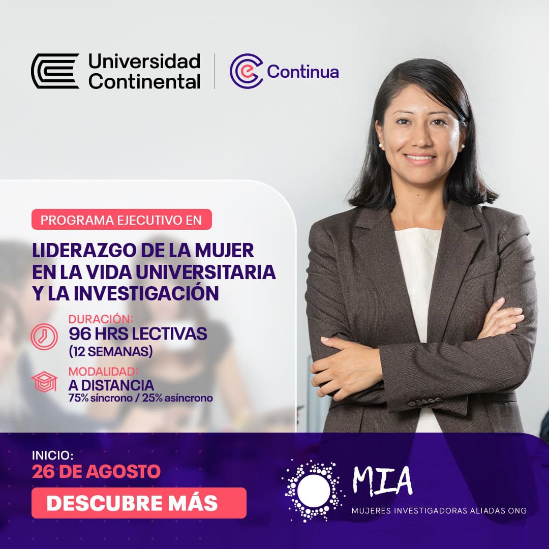 Programa Ejecutivo en Liderazgo de la Mujer en la Vida Universitaria y la Investigación. En alianza con la Universidad Continental de Perú. Este es un programa online e internacional, de especialización en investigación académica, orientado a impulsar la trayectoria profesional y académica de las universitarias.
